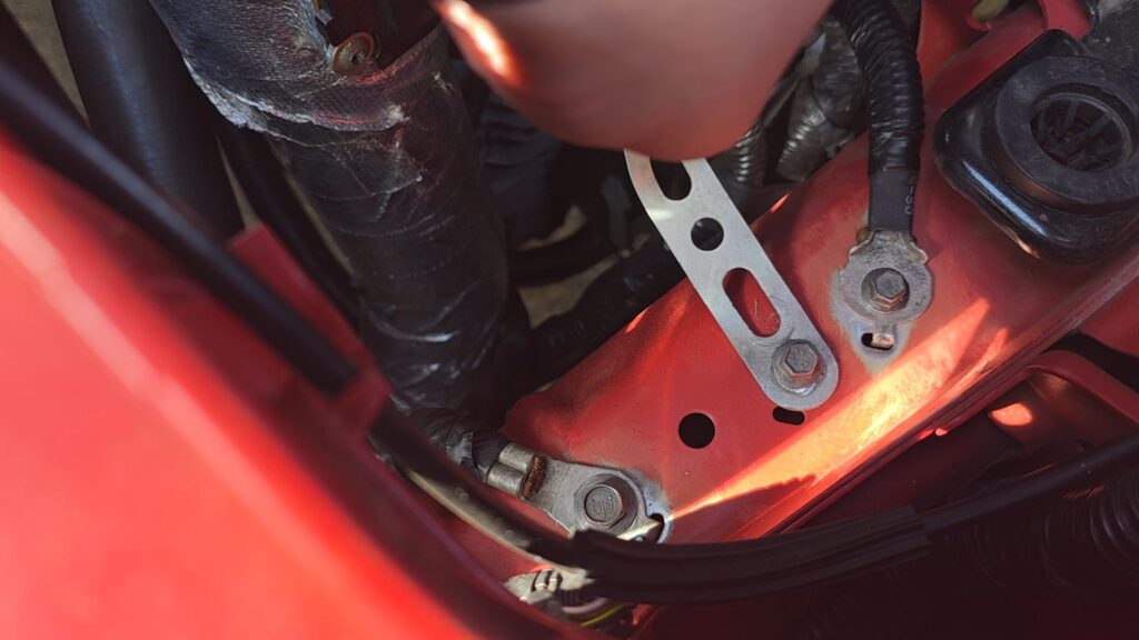 Em muitos casos, o terminal até parece inteiro, o parafuso parece apertado, e por fora está tudo “bonitinho”. Mas entre o terminal e a carroceria pode existir oxidação leve, tinta, sujeira, verniz, resíduo ou até uma área de contato ruim o suficiente para aumentar resistência.