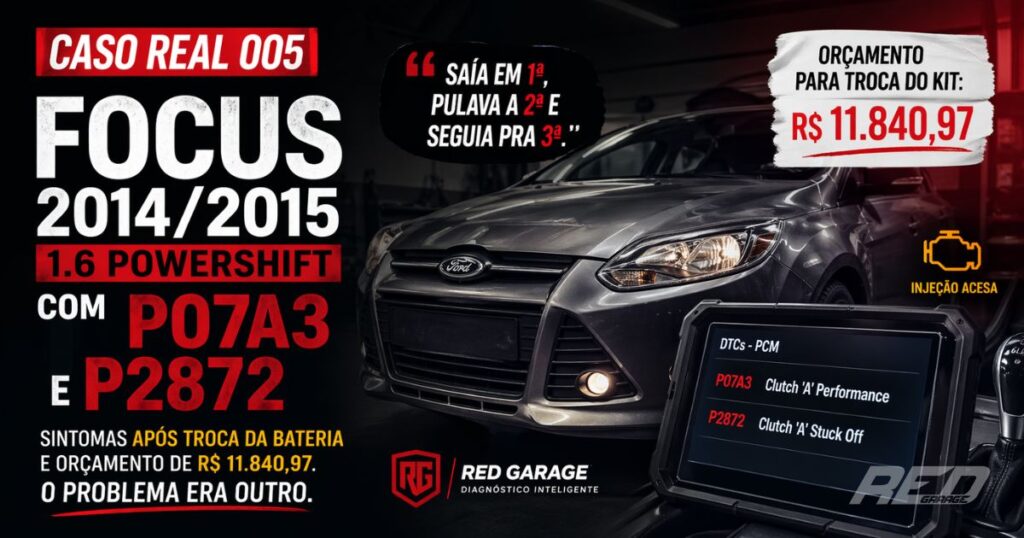 Depois de trocar a bateria, um Ford Focus 1.6 Powershift 2014/2015 passou a sair em 1ª, pular a 2ª e seguir direto para a 3ª. No scanner, apareceram os códigos P07A3 e P2872. Pouco tempo depois, veio o susto: um orçamento de R$ 11.840,97 para trocar o kit de embreagem. O problema? Antes de abrir o câmbio, ainda havia uma pergunta mais importante para responder: o carro estava realmente mostrando uma falha interna… ou a base do sistema ainda nem tinha sido corretamente validada?